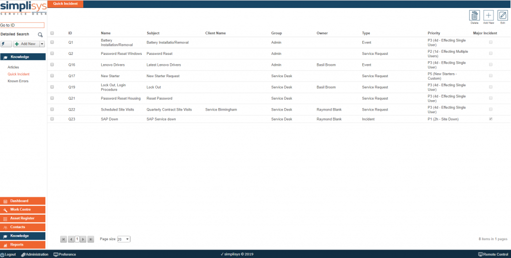 Simplisys Service Management software is rich in standard features, highly configurable and fast to implement across multiple departments so implementation costs are low and return on investment is rapid.